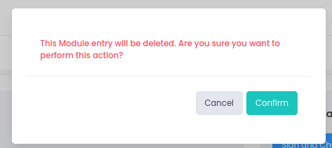 The following pop-up will appear ("Module" will change to "Group" where applicable), simply confirm if you wish to proceed: