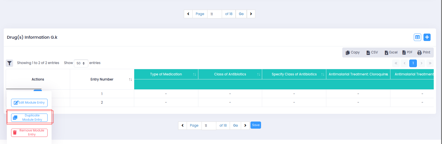 Some modules can also be duplicated.