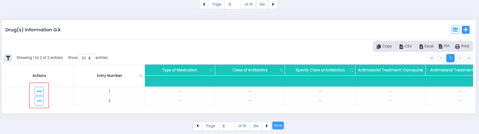 Table view by clicking on the 3 dots below "Actions":