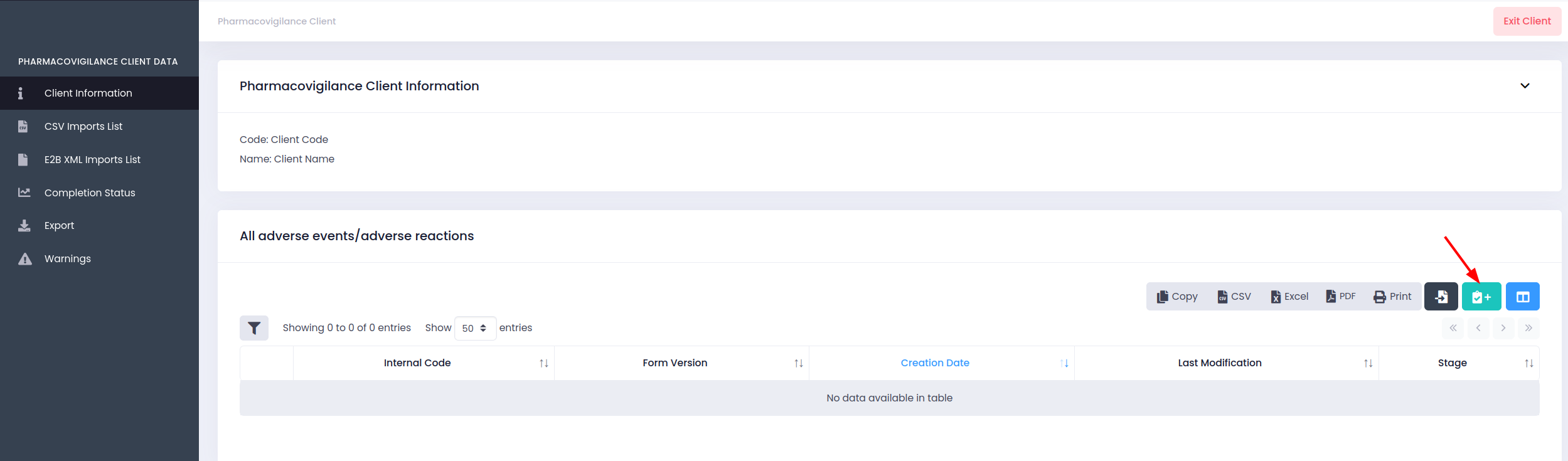 To create a new ICSR access your Client section.