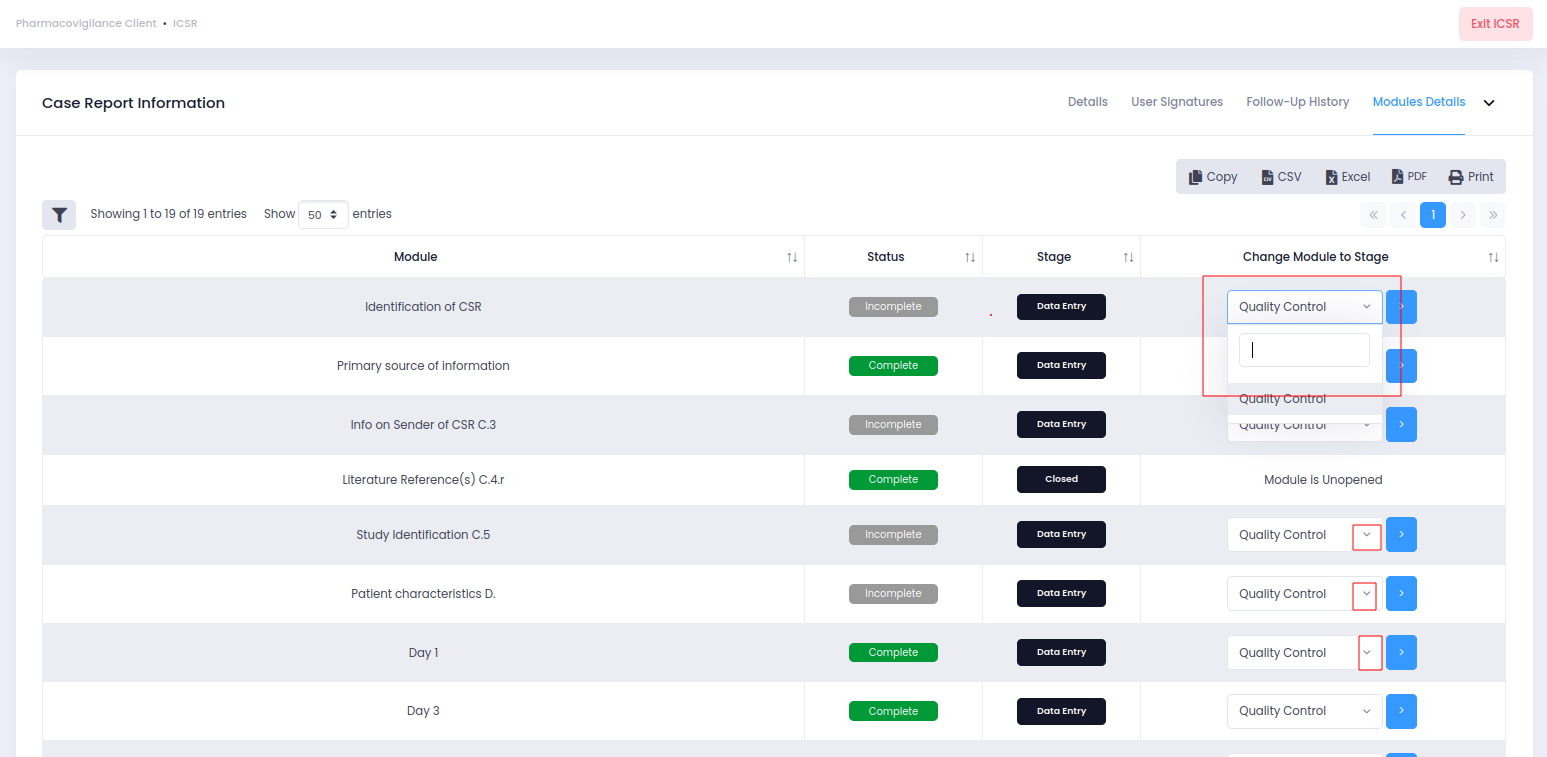 Once here, choose the stage you wish to transition into from the drop-down menu in front of each Module:
