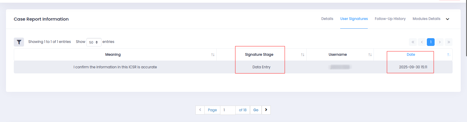 And in the Signatures tab, you will see the previous stage, as well as who and when they signed it: