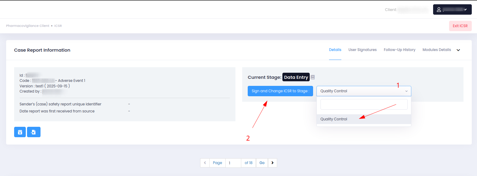 Inside your answered form, start by going to the upper-right "Modules Details" section: Once here, choose the stage you wish to transition into from the drop-down menu in front of each Module: Now click on the blue arrow (1) which will open a pop-up ...